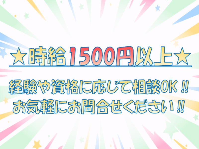 | 時給 | 1,500円~ ◆経験や資格に応じて、希望時給をご相談ください! |